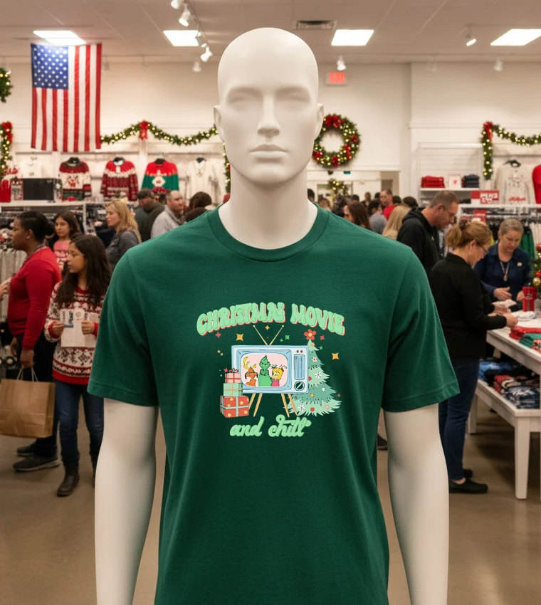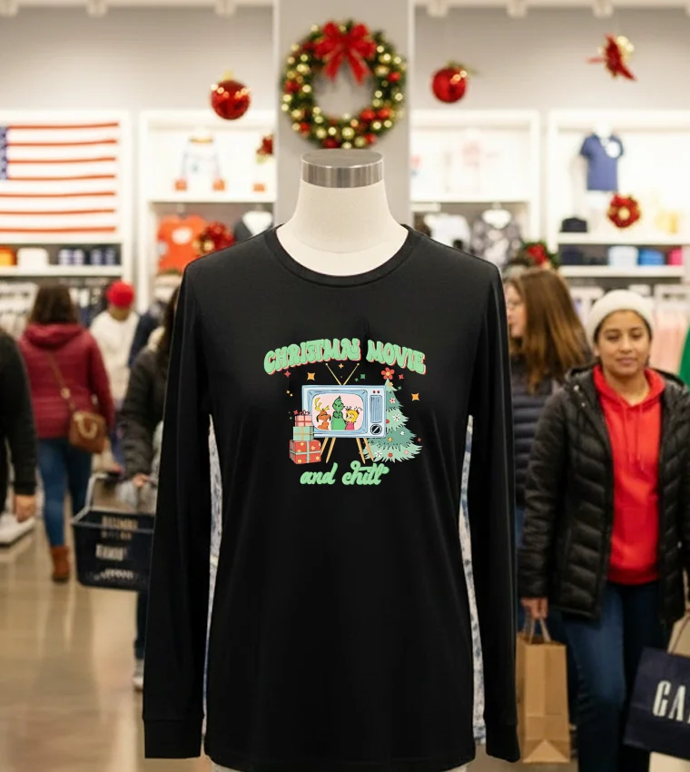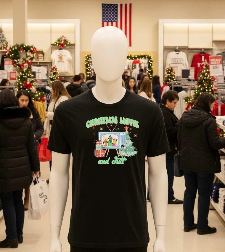 You know how Arizona fashion usually screams “desert chic” or “boho vibes,” especially with all the amazing local markets and sustainability focus we’re seeing, like at the recent MADE Art Boutique events in Phoenix? Well, sometimes, even with all that fabulousness, what you really need is pure, unadulterated comfort. I was scrolling through my feed the other day, and this local Arizona lifestyle blogger, Maya’s Desert Living, was talking about prepping for the holiday season early – not with heavy sweaters, but with breathable, stylish comfort for those surprisingly cool desert nights or just chilling indoors. She mentioned how everyone’s getting into that “hygge” lifestyle, embracing coziness, even here in the warmth. And instantly, I pictured this tee. It’s not just a shirt; it’s a whole mood. Imagine this: the sun has finally set, maybe you’ve just come back from a festive afternoon browsing the artisans at Old Town Scottsdale, or perhaps you braved the holiday crowds at Scottsdale Fashion Square. All you want to do is kick off your boots, maybe light a vanilla candle, and immerse yourself in a classic Christmas movie marathon. That’s exactly where the Cozy Up This Holiday Season With Our Christmas Movie And Chill Shirt shines. It’s for those moments you crave simplicity and warmth, even if it’s 60 degrees outside in December and you’re just enjoying a subtle chill after a day of Arizona sun. This shirt fits right into the relaxed, yet stylish, Arizona aesthetic, blending that effortless streetwear cool with ultimate comfort. It’s perfect for anyone looking to embrace the festive spirit without sacrificing that laid-back, “Southwest casual” vibe we all love. It’s a subtle nod to the holidays, relevant for year-round comfort in our unique desert climate.